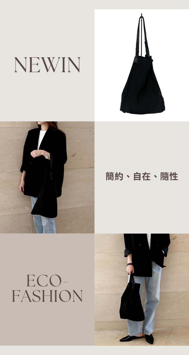 韓國 BLUEORB 2way Each Bag 兩用皺褶托特包 肩背包-內附收納袋 酷炫黑