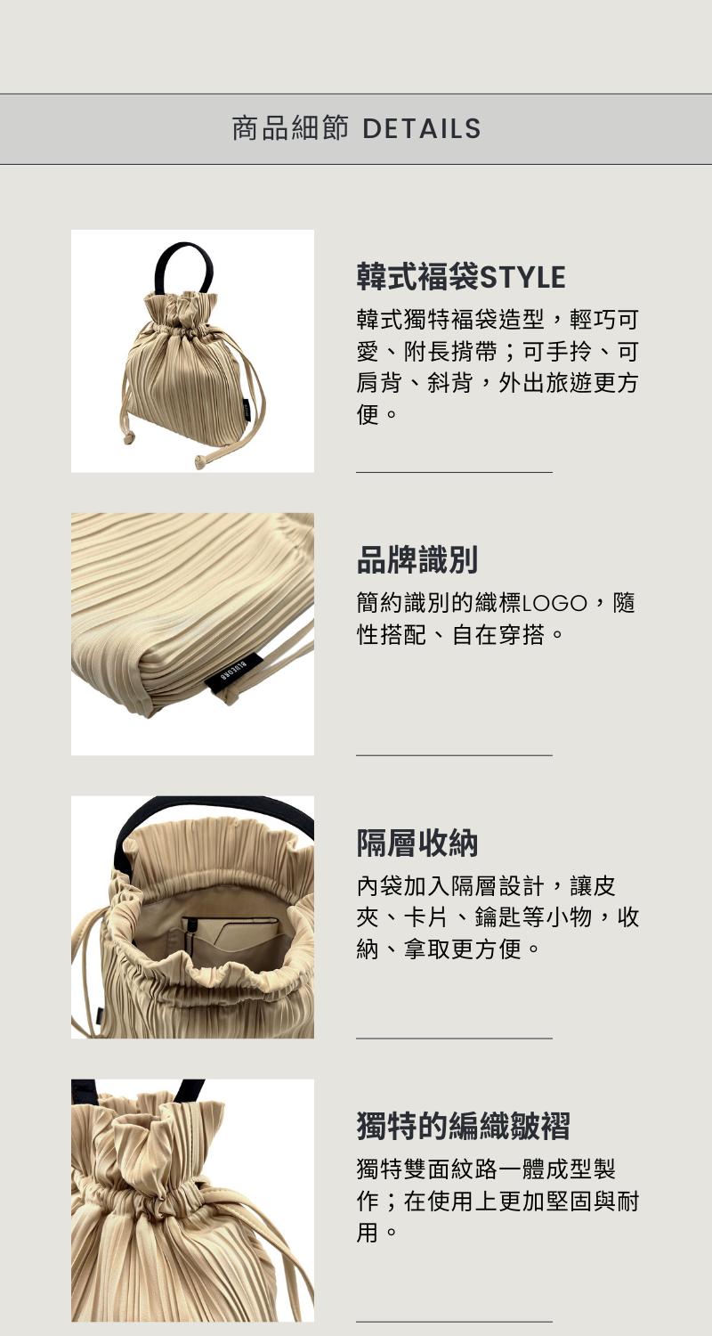 2.韓式時尚褔袋設計;輕巧可愛、附長背帶