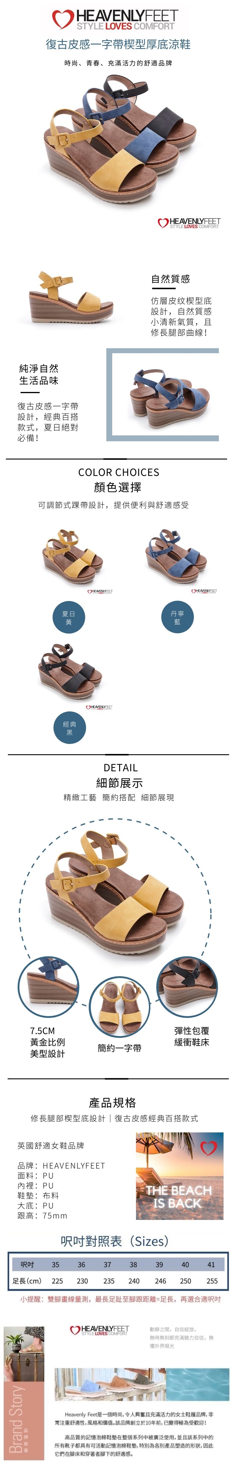 HEAVENLYFEET|英國舒適休閒女鞋 復古皮感一字楔型厚底涼鞋-ORION(丹寧藍)