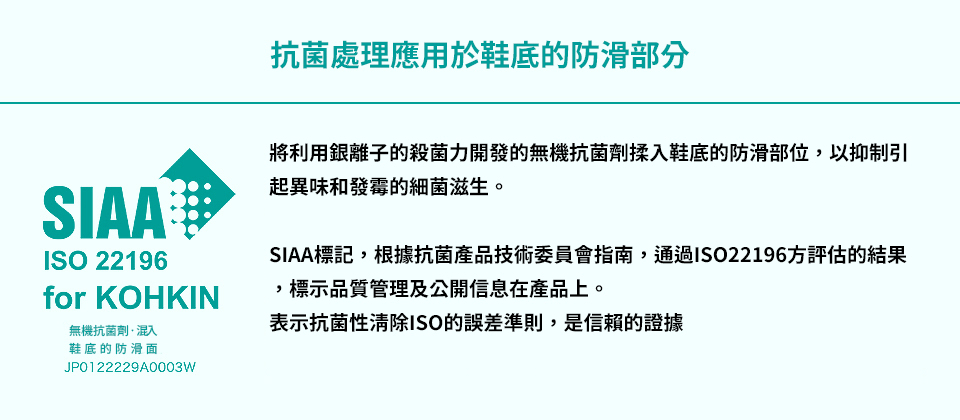 ◆SIAA認證的高度安全的無機抗菌劑的防滑材料,即使在光滑地板上也能保持穩固的行走舒適感,同時抑制異味與細菌生長。