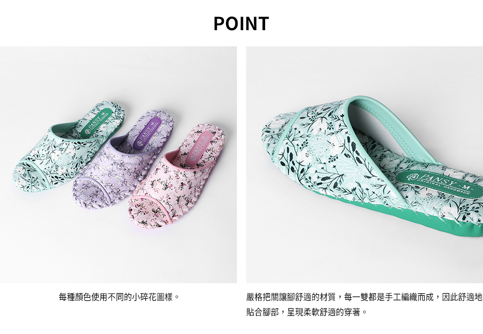 ◆每一雙都是手工編織而成,舒適地貼合腳部,呈現柔軟舒適的穿著。