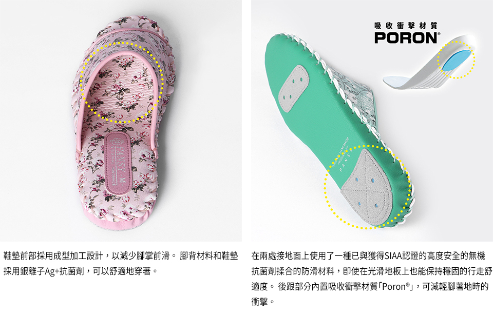◆SIAA認證的高度安全的無機抗菌劑的防滑材料,即使在光滑地板上也能保持穩固的行走舒適感,同時抑制異味與細菌生長。