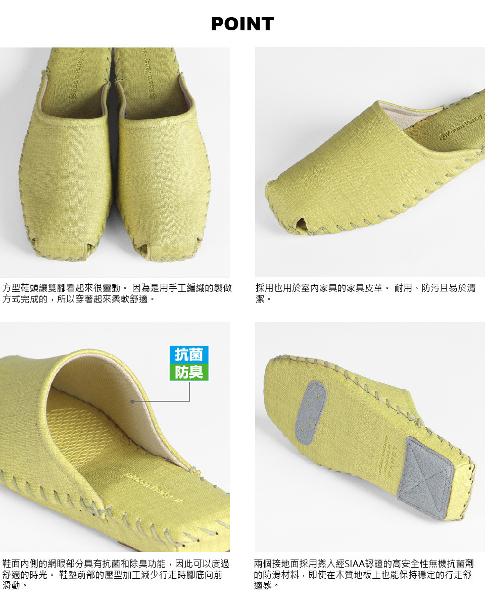 ◆SIAA認證的高度安全的無機抗菌劑的防滑材料,即使在光滑地板上也能保持穩固的行走舒適感,同時抑制異味與細菌生長。