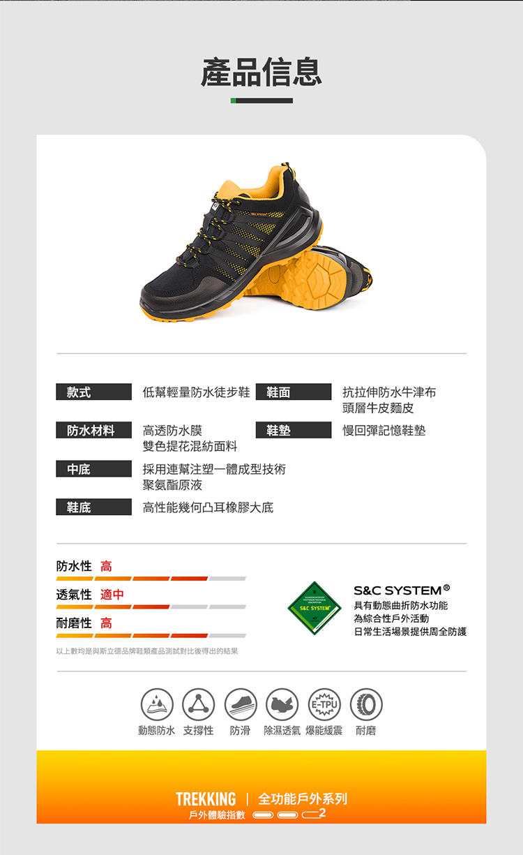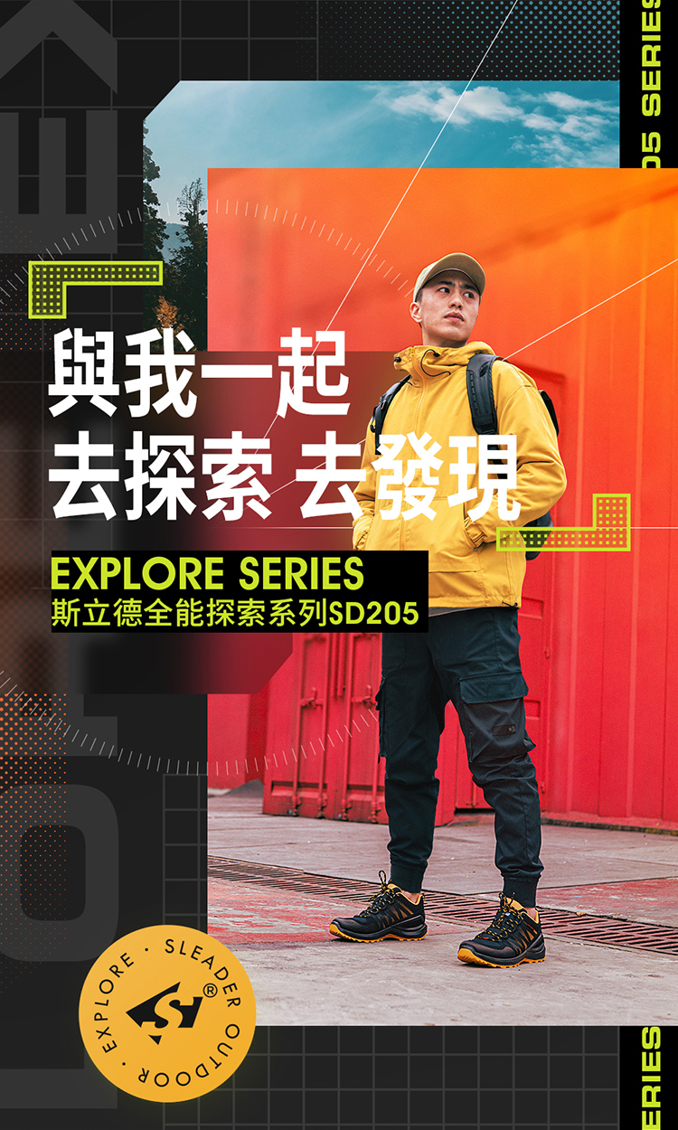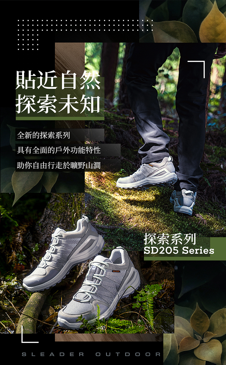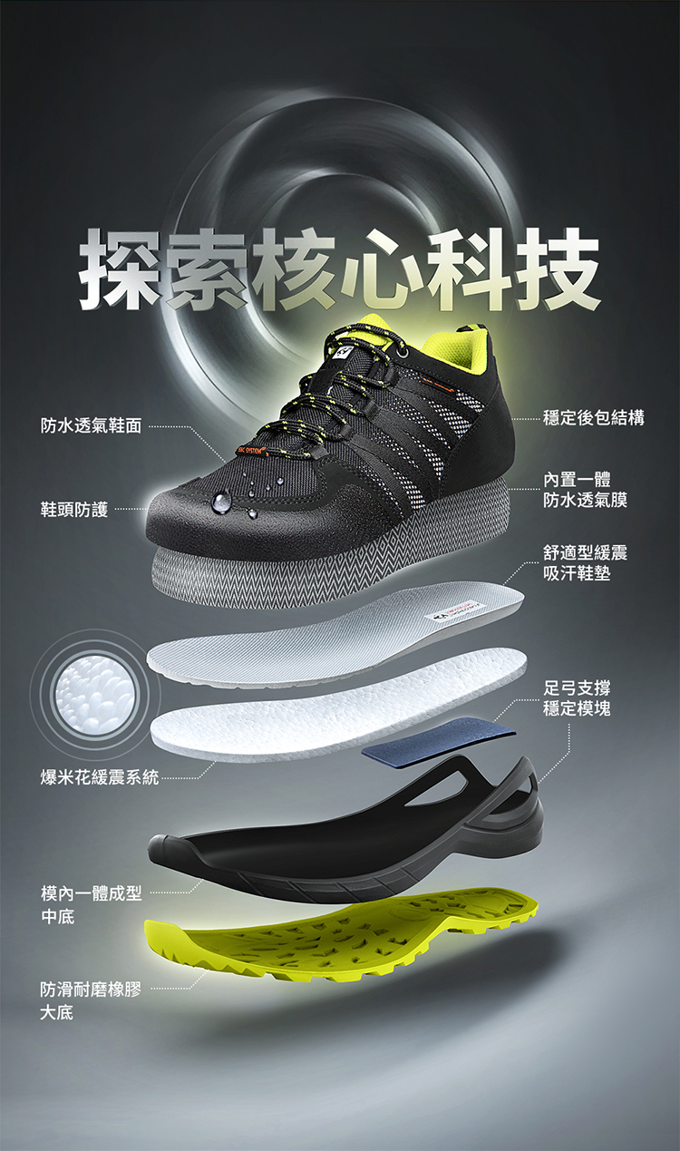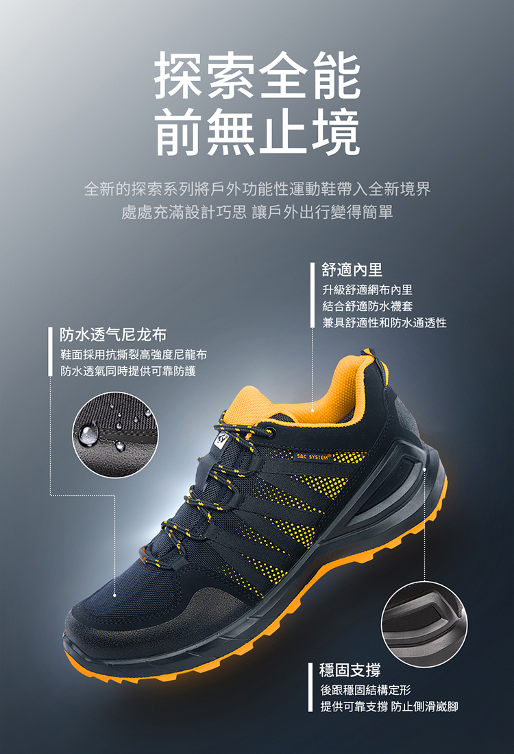 sleader|男鞋 動態防水 輕量安全戶外休閒鞋-SD205(黑橘)