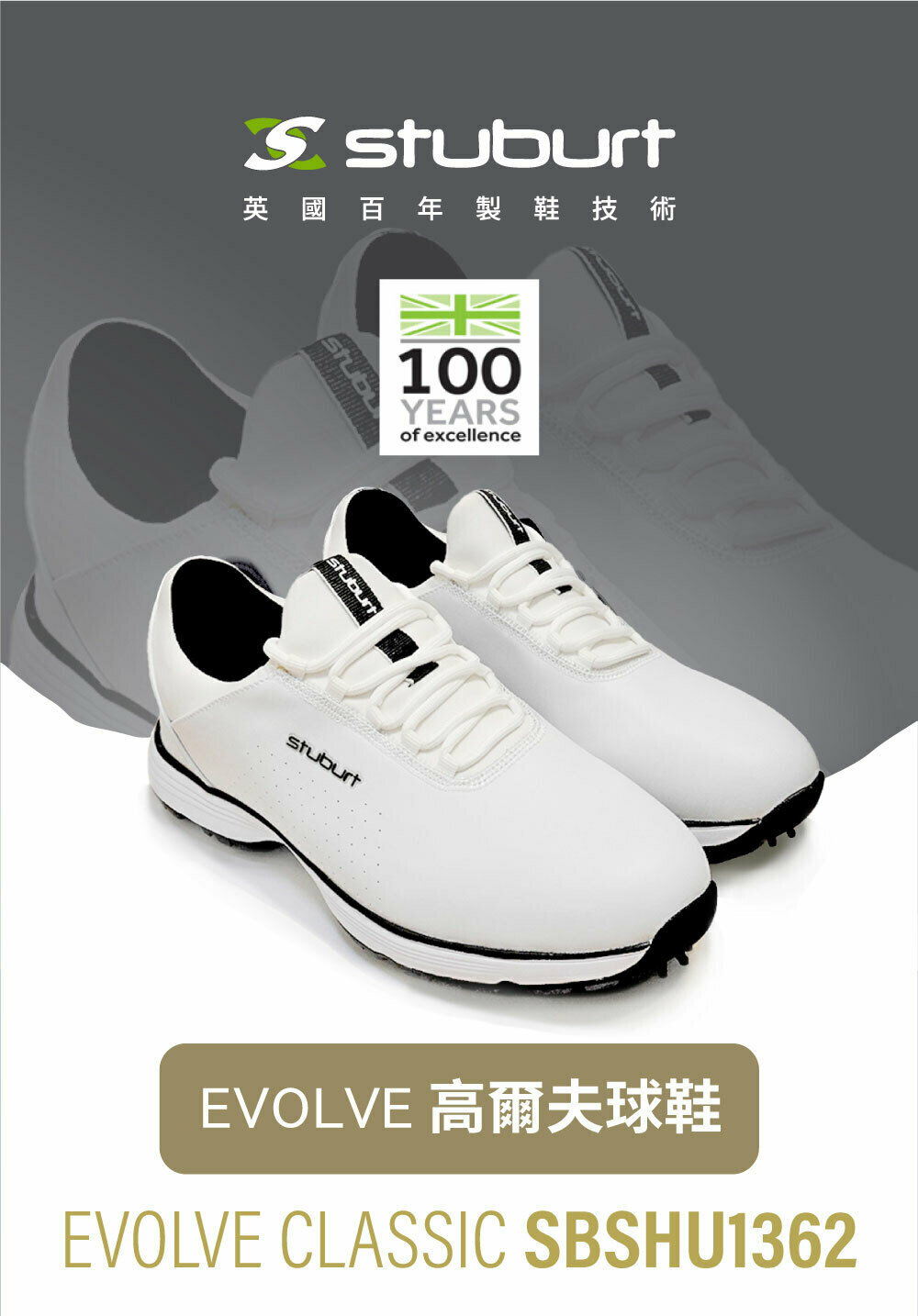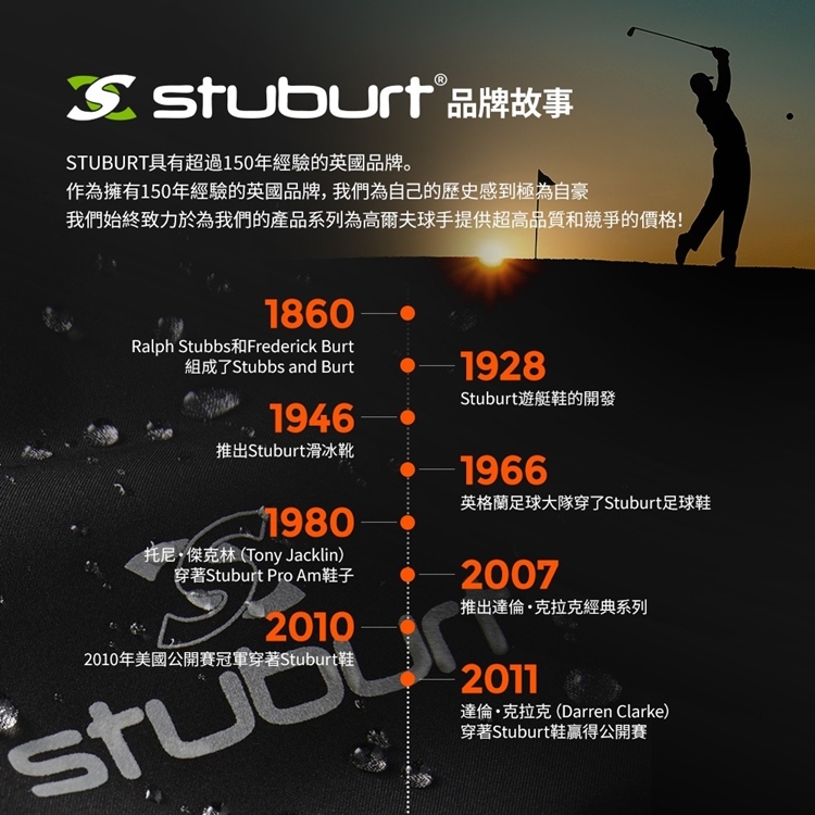 stuburt│英國百年高爾夫科技防水鞋 男鞋 帶防滑鞋釘 EVOLVE CLASSIC SPIKED SBSHU1362(黑色)