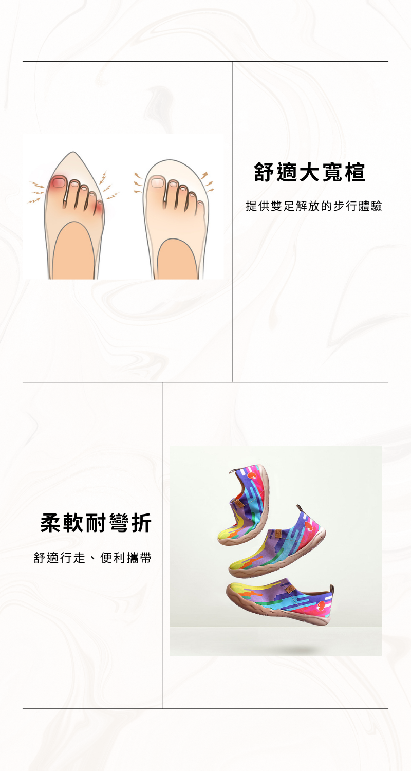 ▸超大空間舒適寬楦設計,提供雙足解放不壓迫