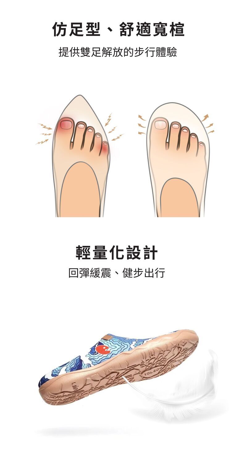 ▸超大空間舒適寬楦設計,提供雙足解放不壓迫