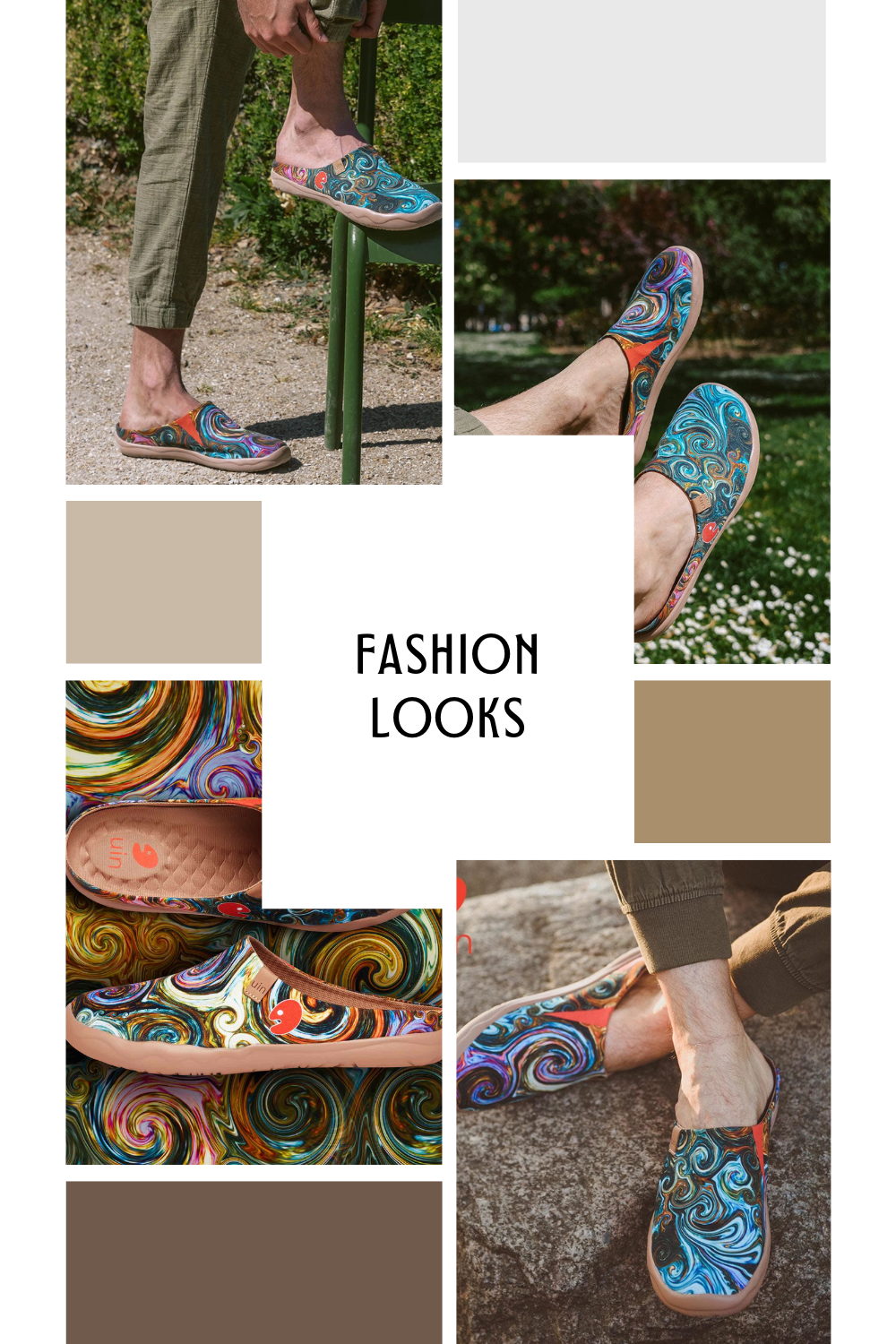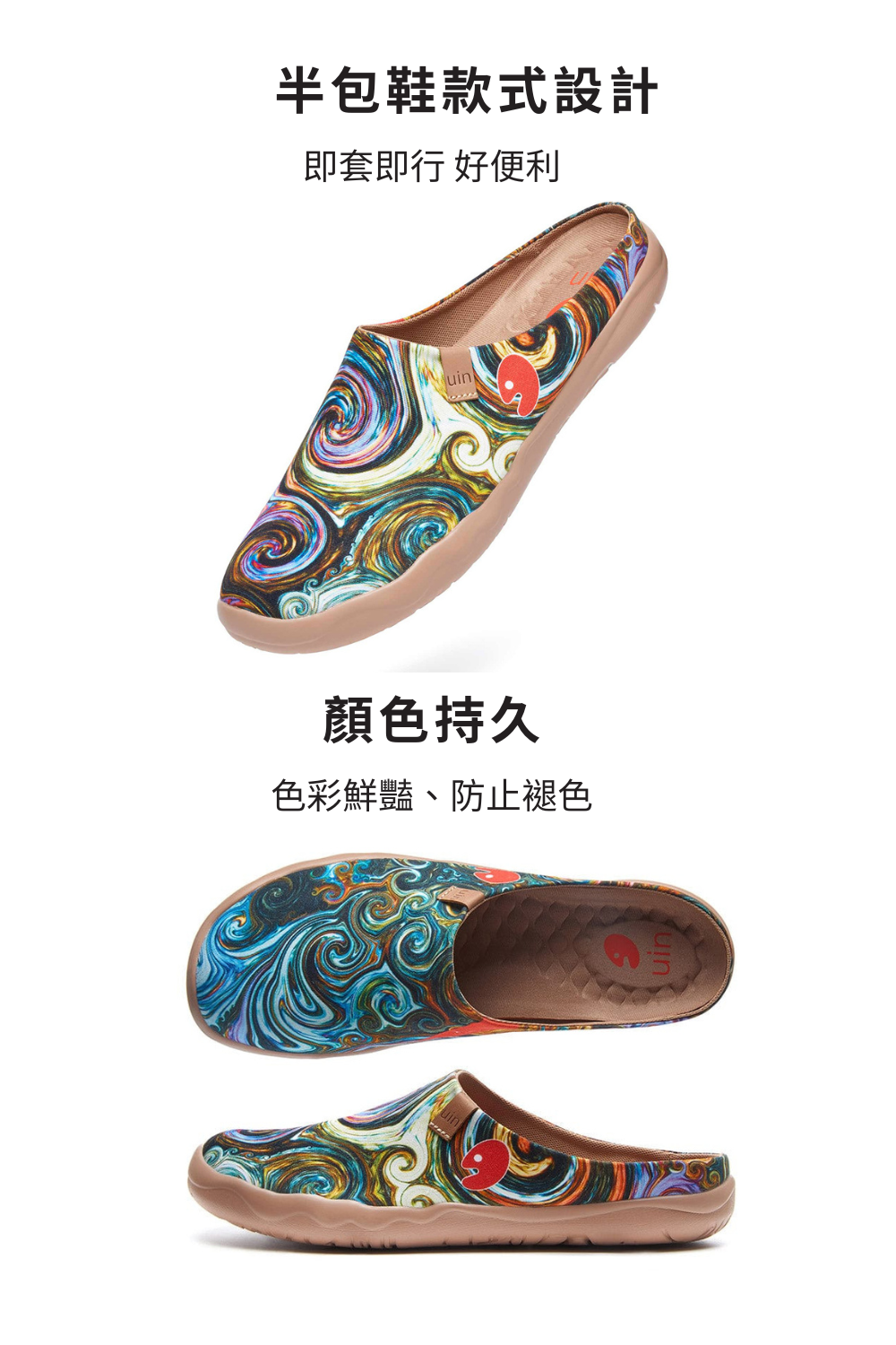 uin|西班牙原創設計 男鞋 半包鞋 半拖鞋 帆布鞋 懶人鞋 星旋彩繪休閒鞋M1220018