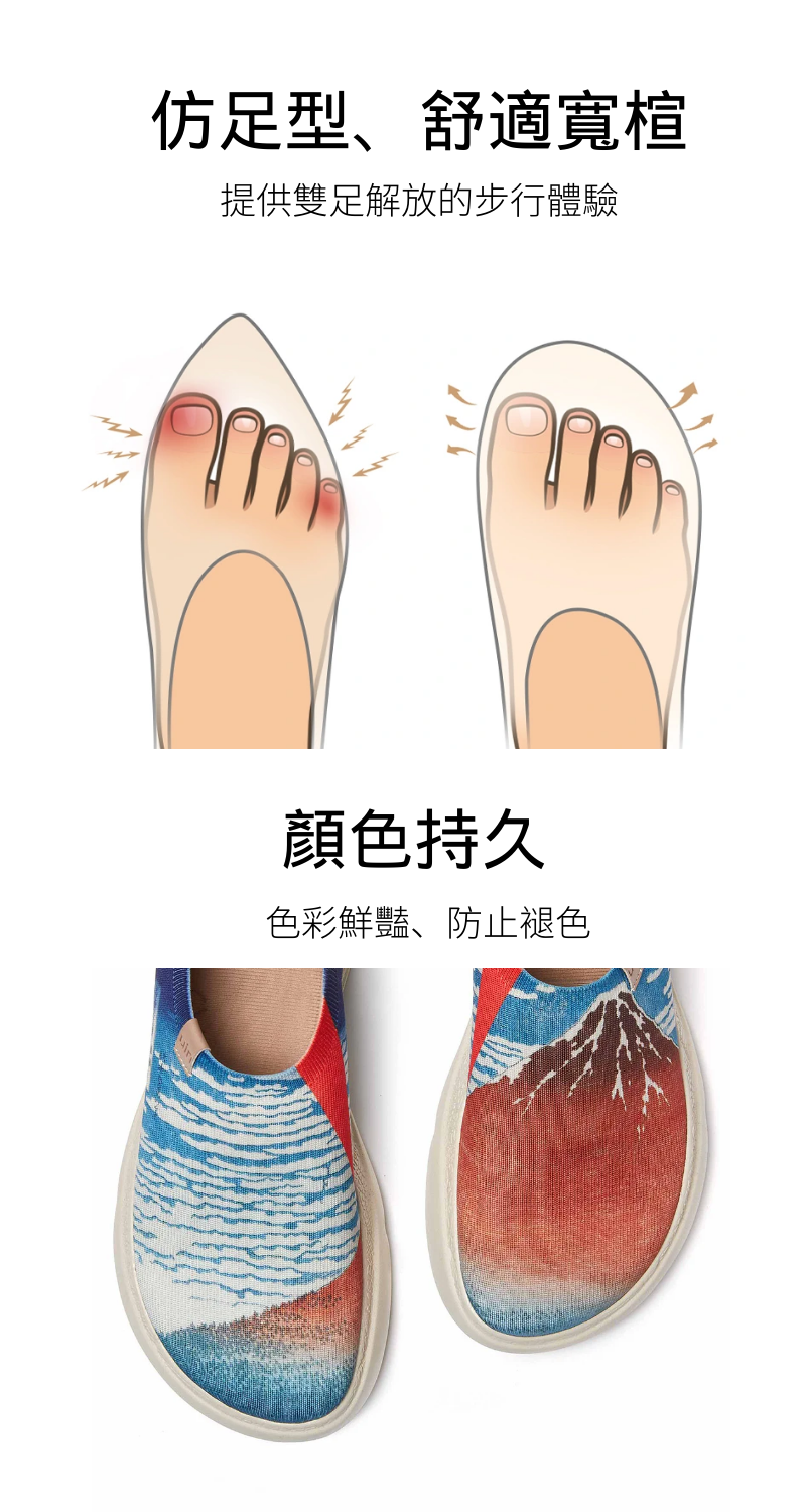 5.超大空間舒適寬楦設計,提供雙足解放不壓迫