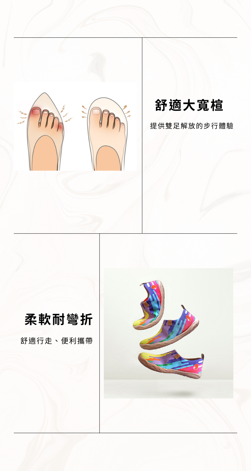 4.超大空間舒適寬楦設計,提供雙足解放不壓迫