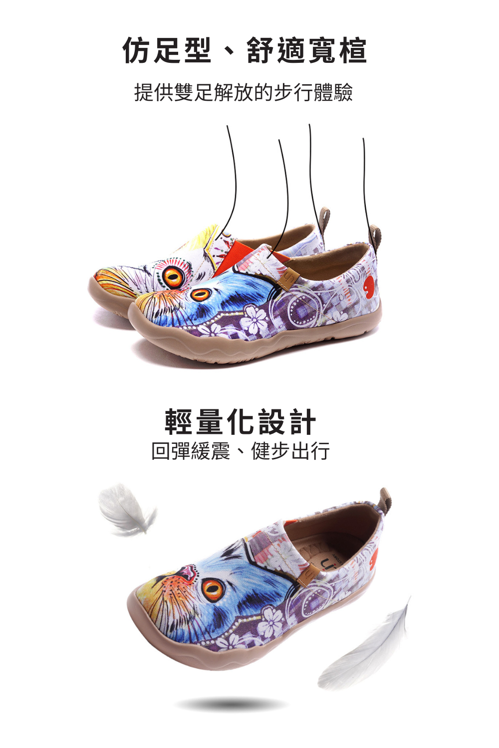 uin西班牙設計師的原創品牌,以旅行之心詮釋健康雙足走訪世界初衷。鞋款設計以趣味彩繪主題為發想主軸,功能特色以輕量抗震、柔軟彈性為雙足健康發展核心,為旅途帶來穿著無負擔的愉快體驗。