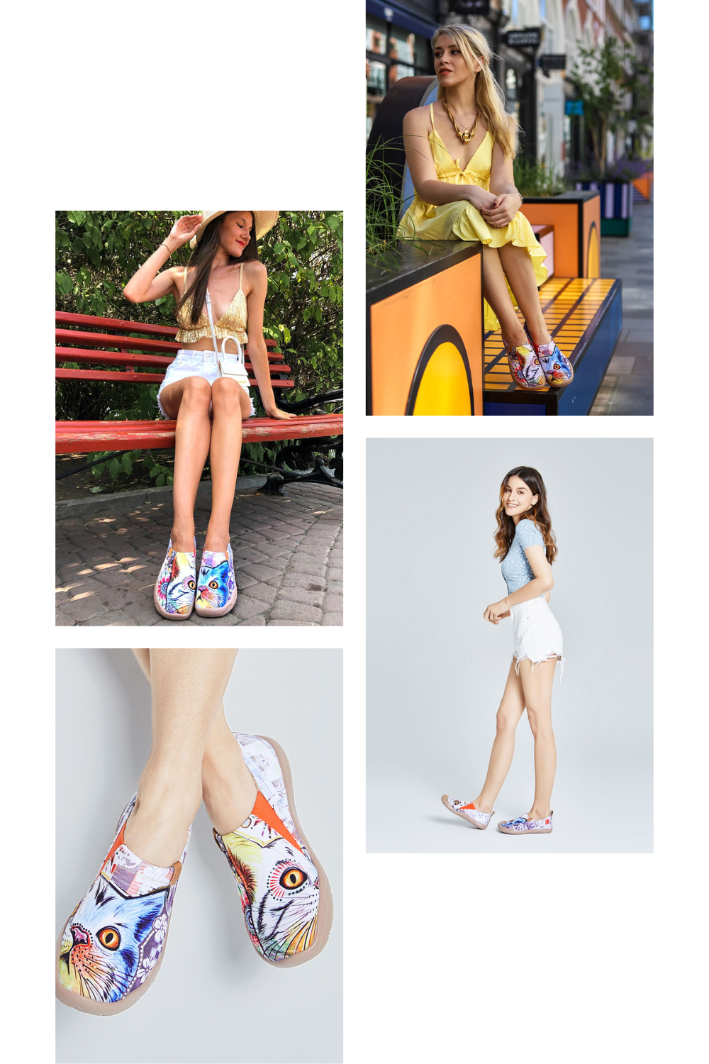 uin|西班牙原創設計 女鞋 帆布鞋 懶人鞋 彩虹貓咪彩繪休閒鞋W0101055