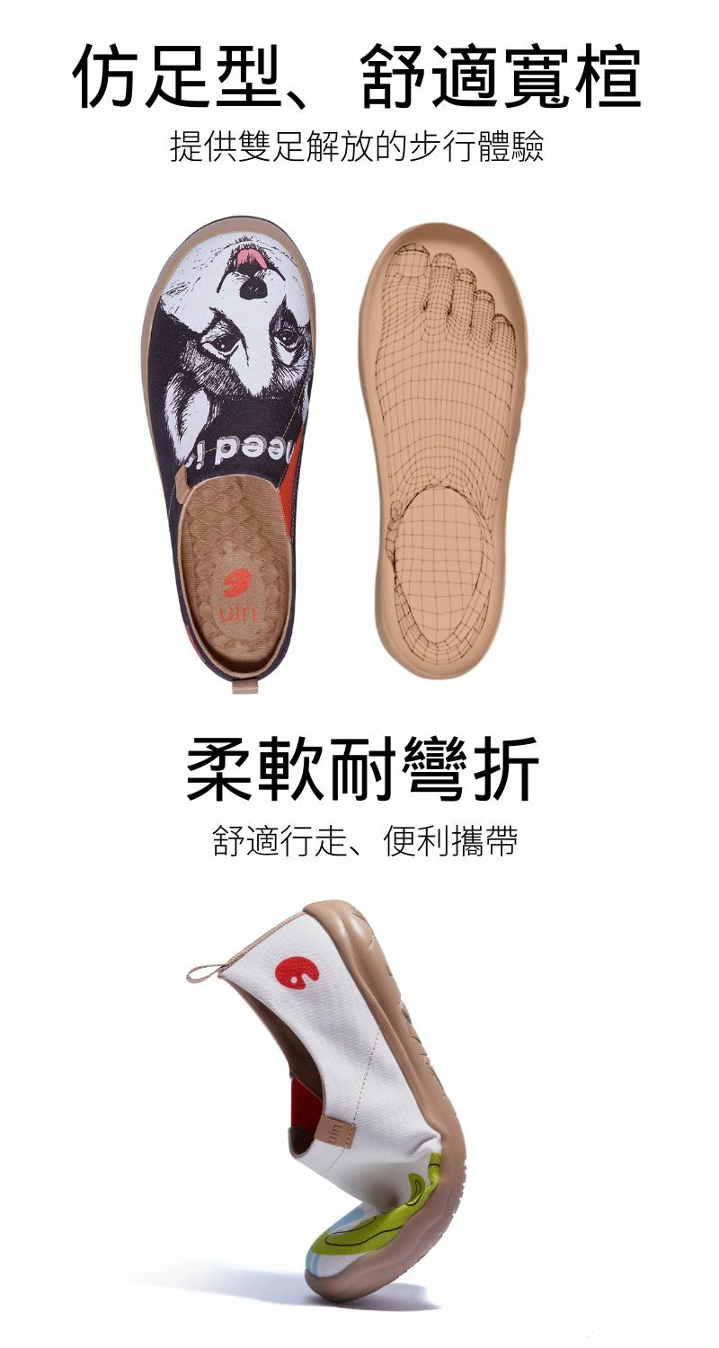 uin西班牙設計師的原創品牌,以旅行之心詮釋健康雙足走訪世界初衷。 鞋款設計以趣味彩繪主題為發想主軸,功能特色以輕量抗震、柔軟彈性為雙足健康發展核心,為旅途帶來穿著無負擔的愉快體驗。