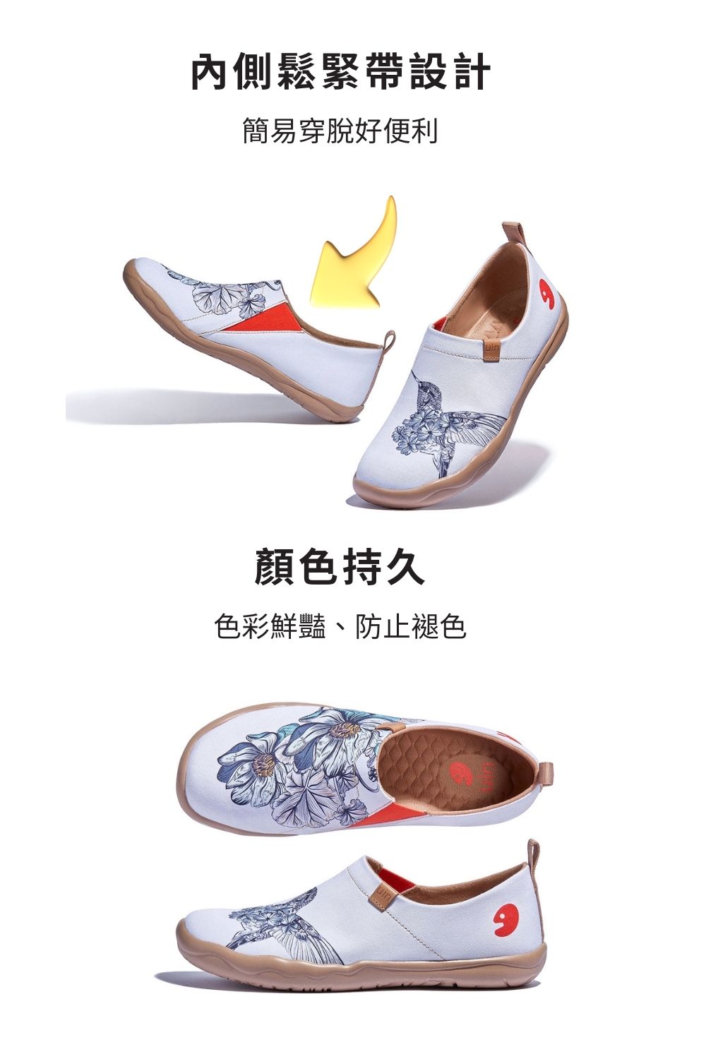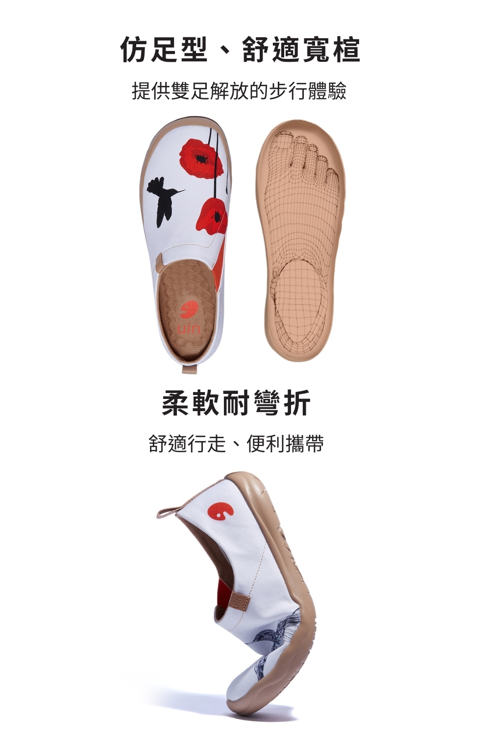uin西班牙設計師的原創品牌,以旅行之心詮釋健康雙足走訪世界初衷。鞋款設計以趣味彩繪主題為發想主軸,功能特色以輕量抗震、柔軟彈性為雙足健康發展核心,為旅途帶來穿著無負擔的愉快體驗。