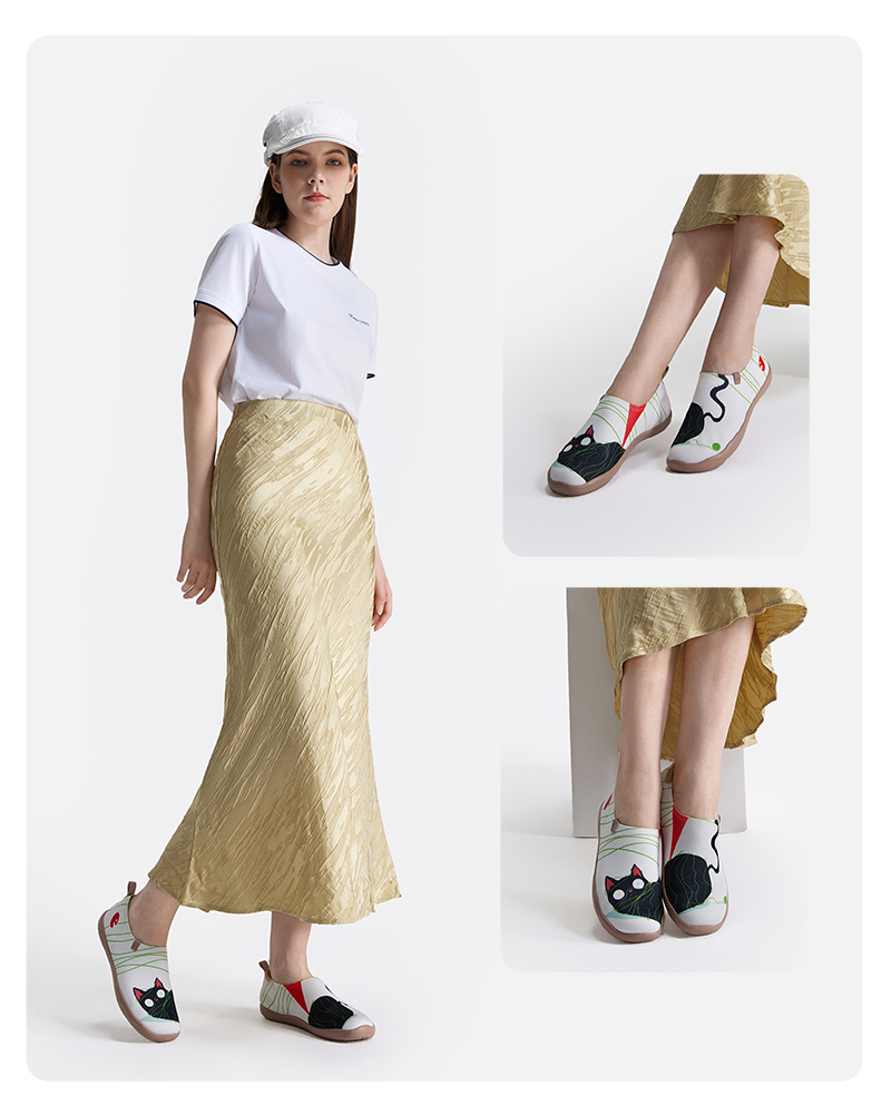 uin|西班牙原創設計 女鞋 帆布鞋 懶人鞋 躺平笨貓彩繪休閒鞋W1011470