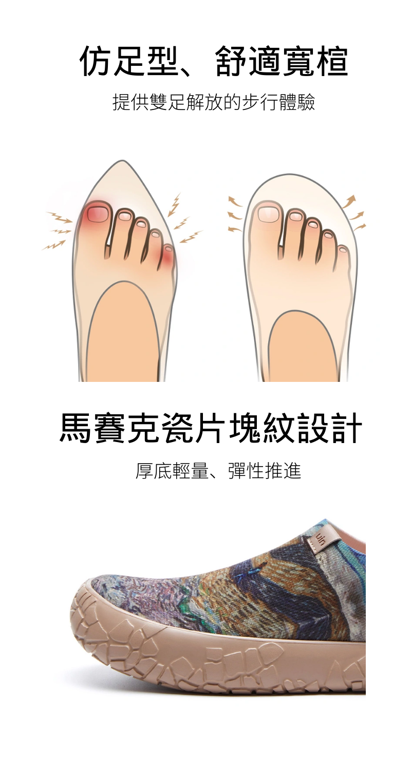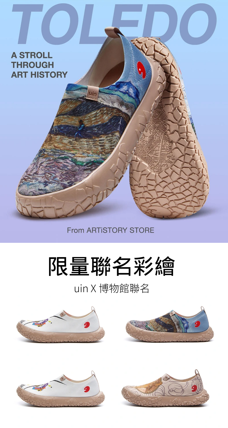 uin西班牙設計師的原創品牌,以旅行之心詮釋健康雙足走訪世界初衷。鞋款設計以趣味彩繪主題為發想主軸,功能特色以輕量抗震、柔軟彈性為雙足健康發展核心,為旅途帶來穿著無負擔的愉快體驗。