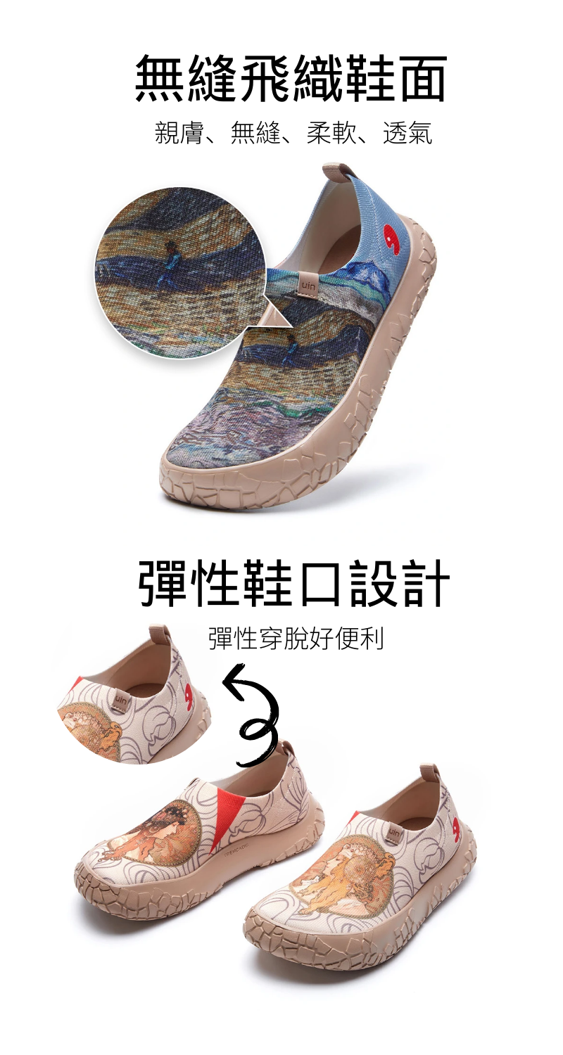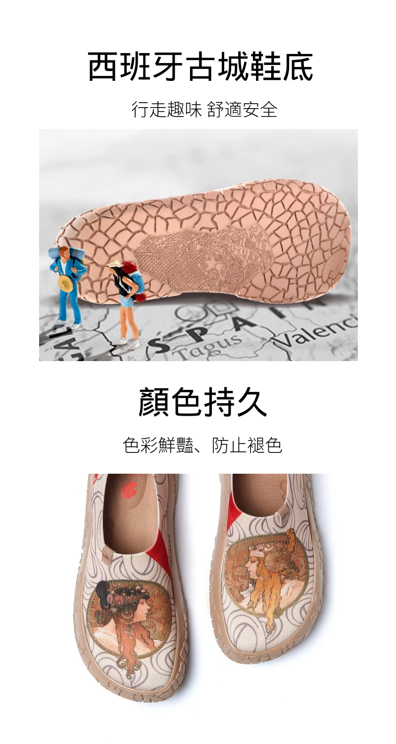 uin|西班牙原創設計 女鞋 帆布鞋 懶人鞋 穆夏 黑髮女郎與金髮女郎彩繪休閒鞋W1711436