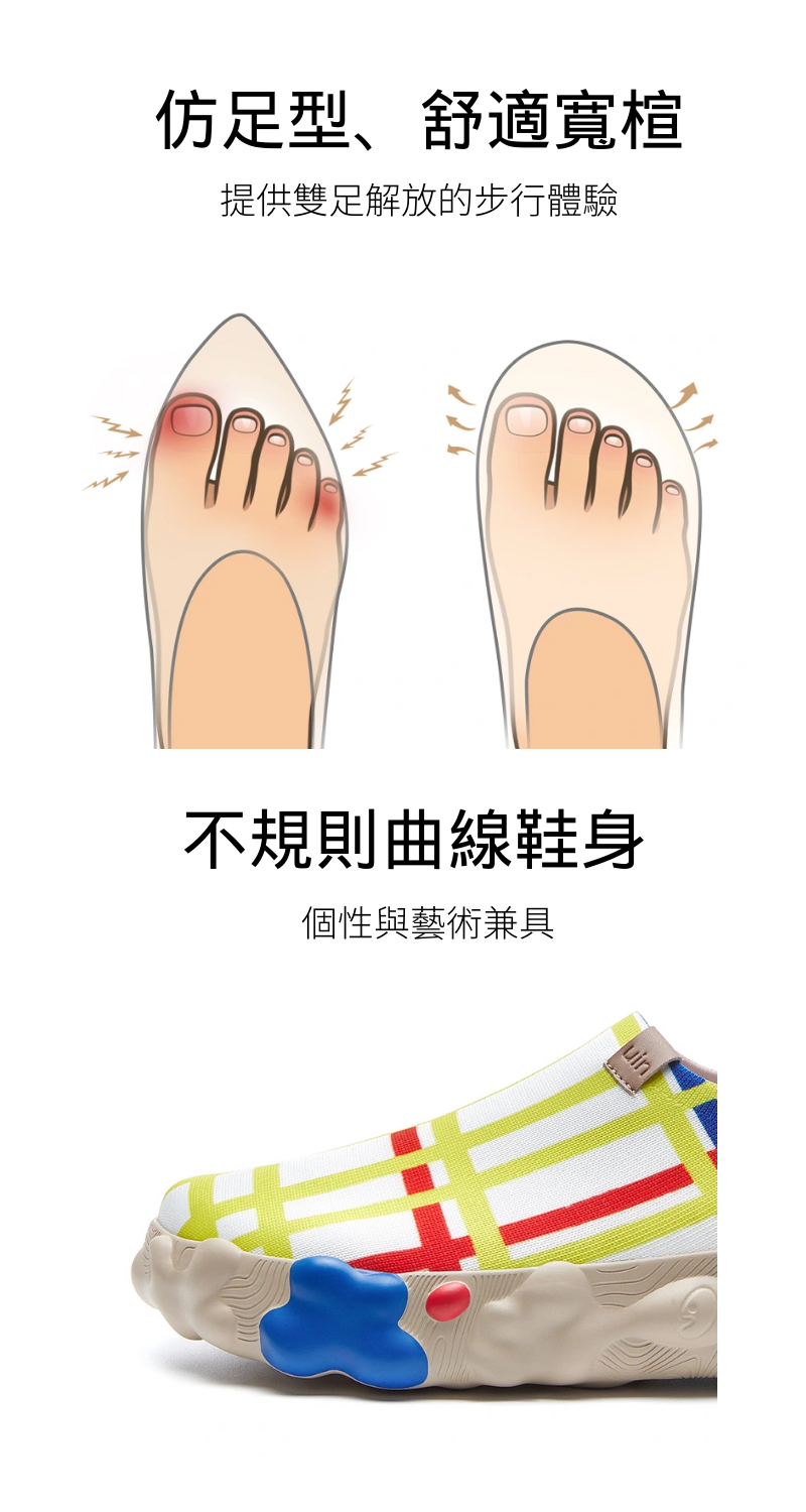 5.超大空間舒適寬楦設計,提供雙足解放不壓迫
