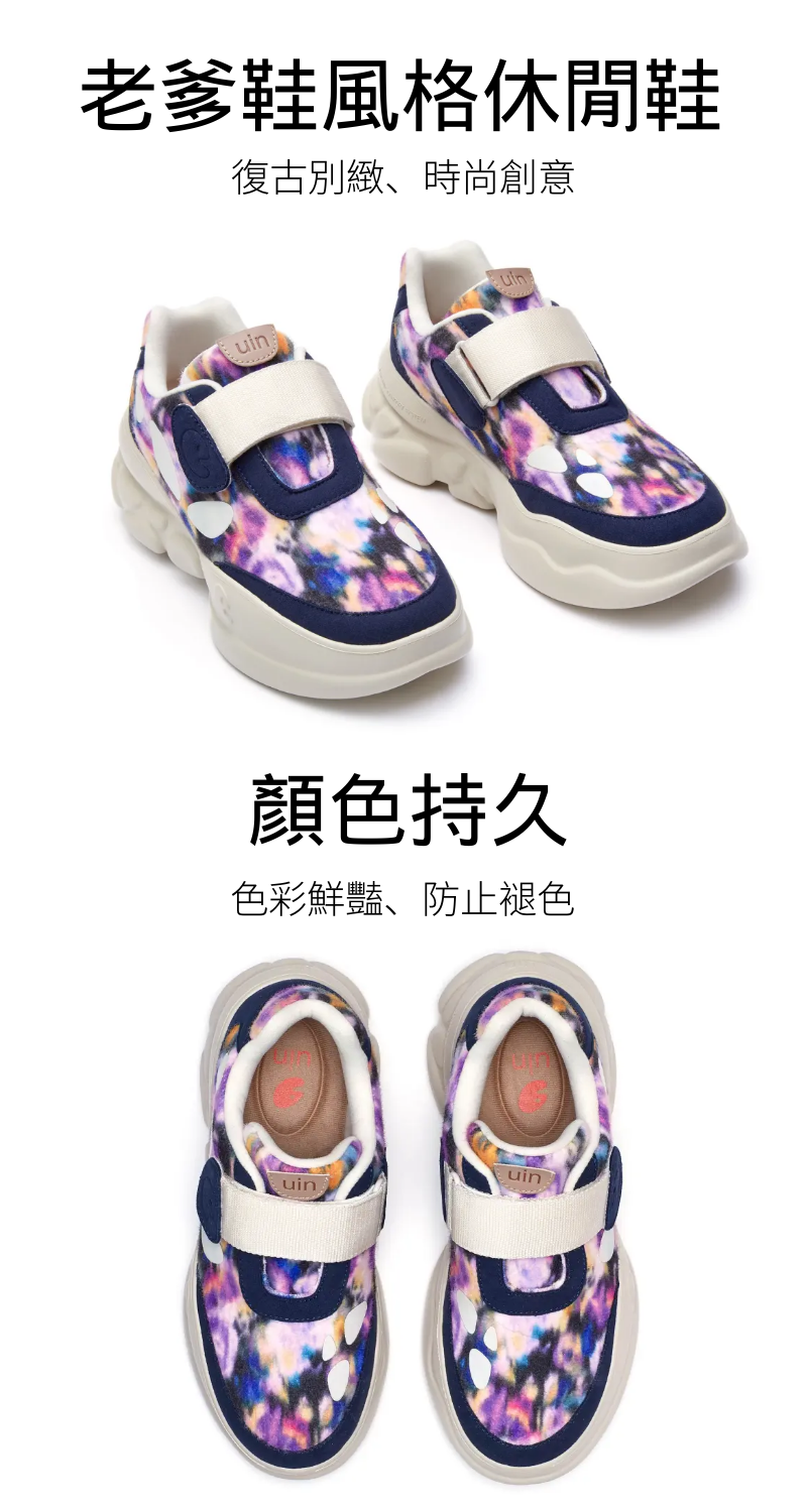 uin西班牙設計師的原創品牌,以旅行之心詮釋健康雙足走訪世界初衷。鞋款設計以趣味彩繪主題為發想主軸,功能特色以輕量抗震、柔軟彈性為雙足健康發展核心,為旅途帶來穿著無負擔的愉快體驗。