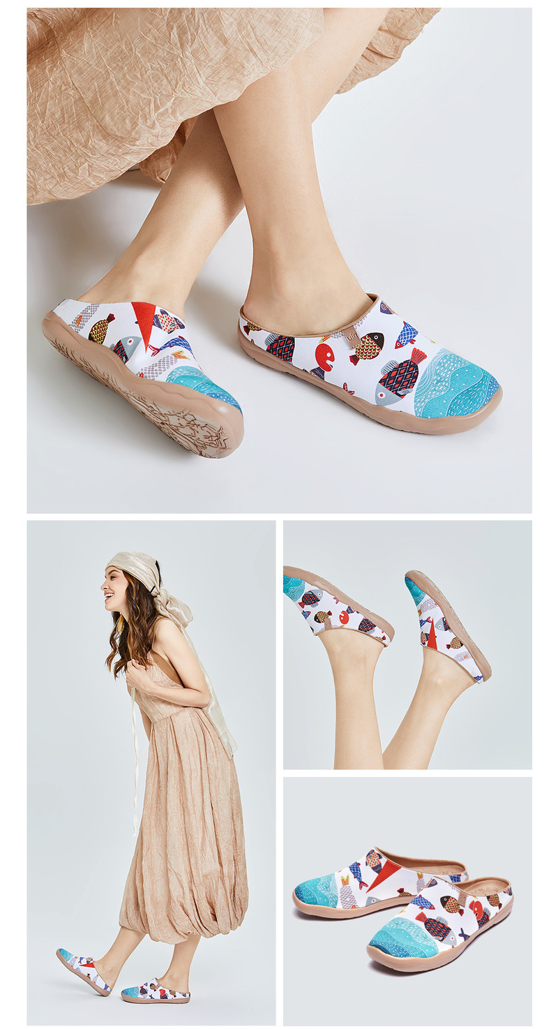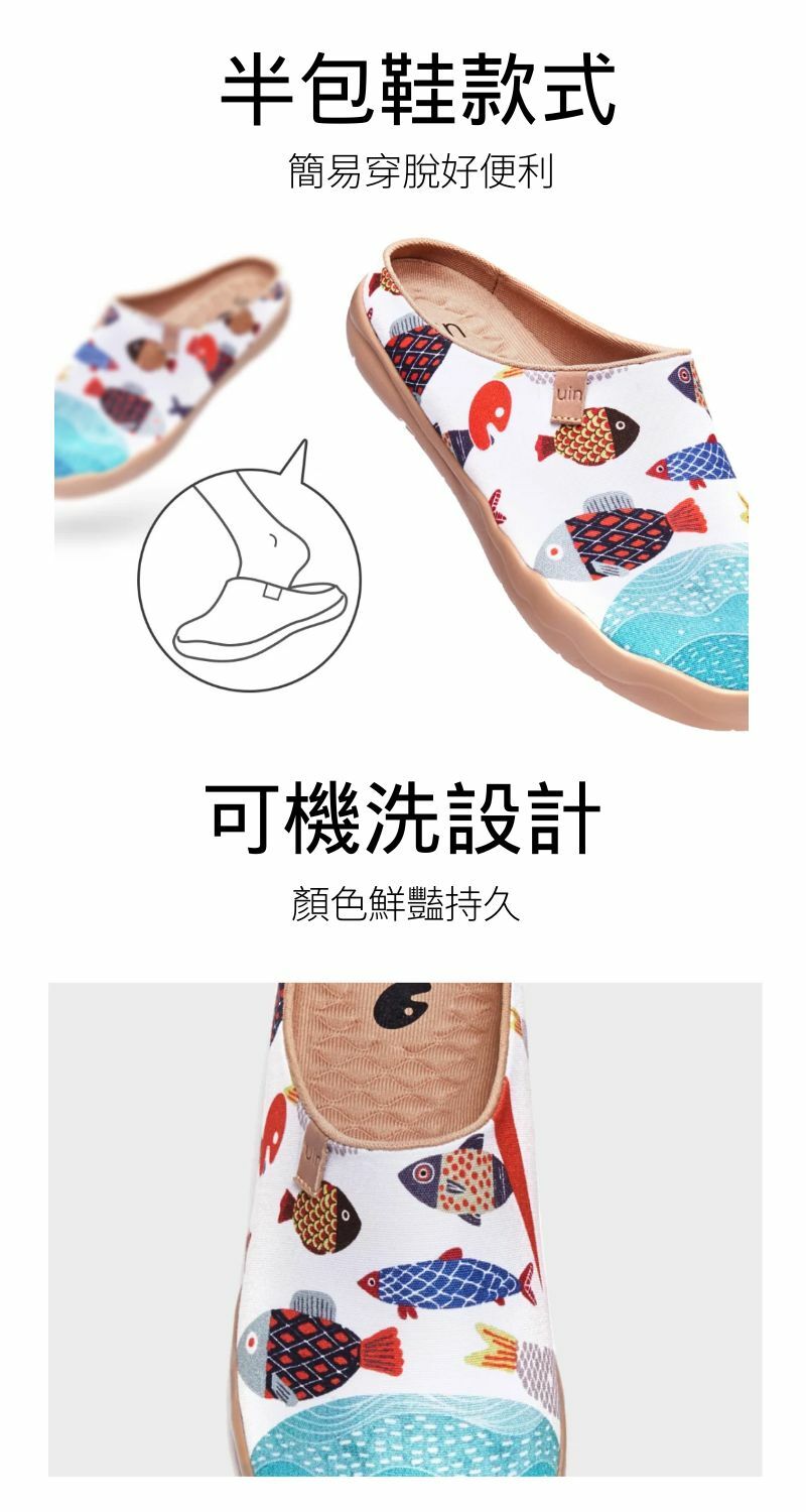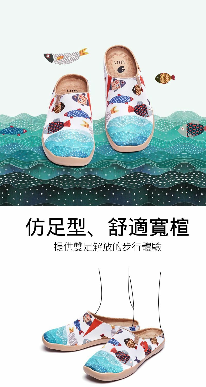 uin|西班牙原創設計 女鞋 半包鞋 半拖鞋 帆布鞋 懶人鞋 魚趣彩繪休閒鞋W1122521