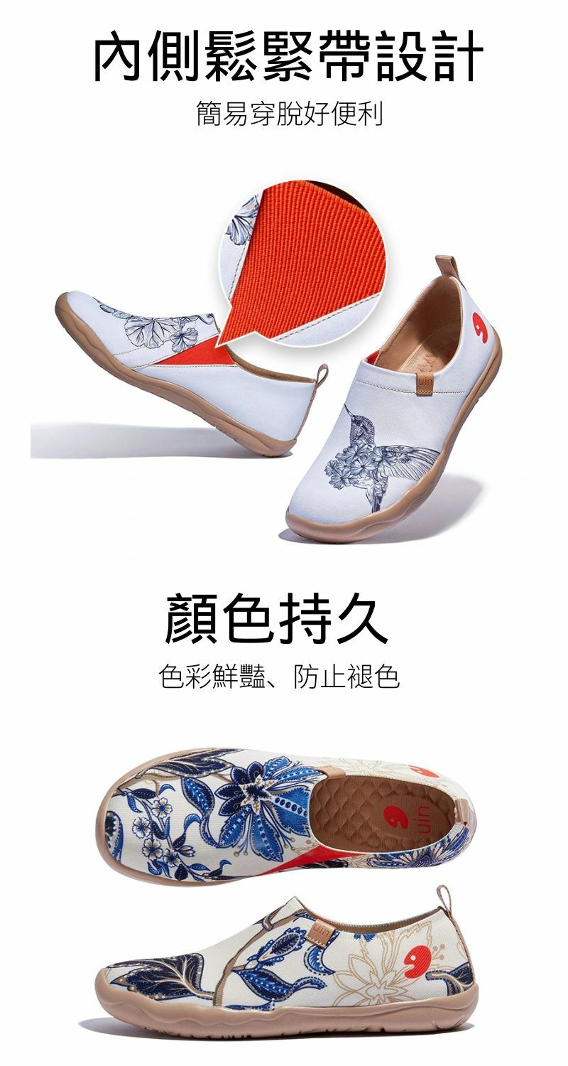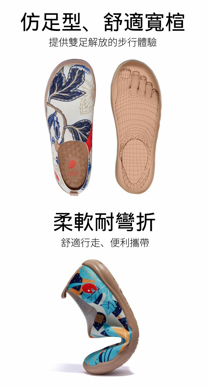 uin西班牙設計師的原創品牌,以旅行之心詮釋健康雙足走訪世界初衷。鞋款設計以趣味彩繪主題為發想主軸,功能特色以輕量抗震、柔軟彈性為雙足健康發展核心,為旅途帶來穿著無負擔的愉快體驗。