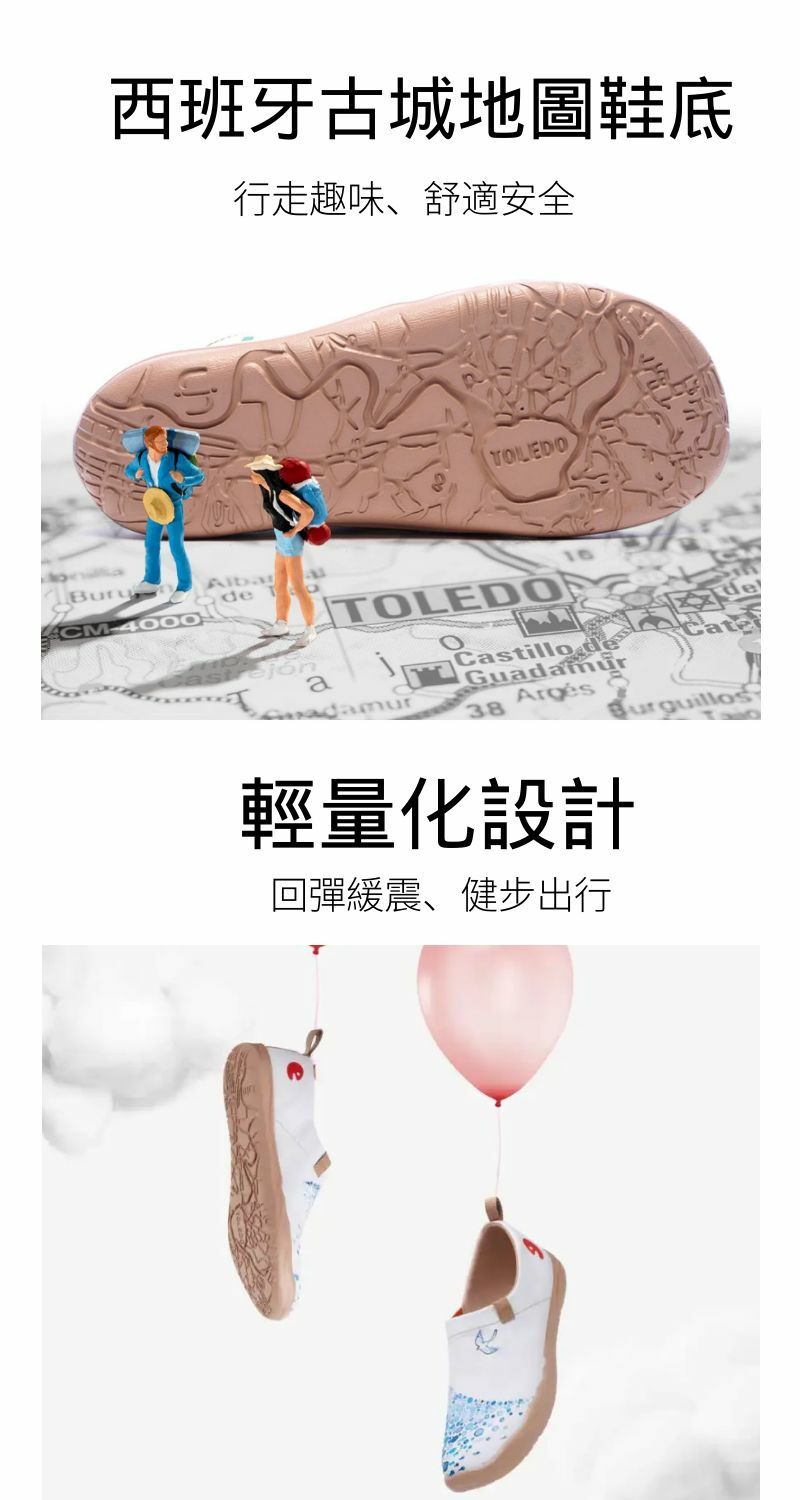 uin西班牙設計師的原創品牌,以旅行之心詮釋健康雙足走訪世界初衷。鞋款設計以趣味彩繪主題為發想主軸,功能特色以輕量抗震、柔軟彈性為雙足健康發展核心,為旅途帶來穿著無負擔的愉快體驗。
