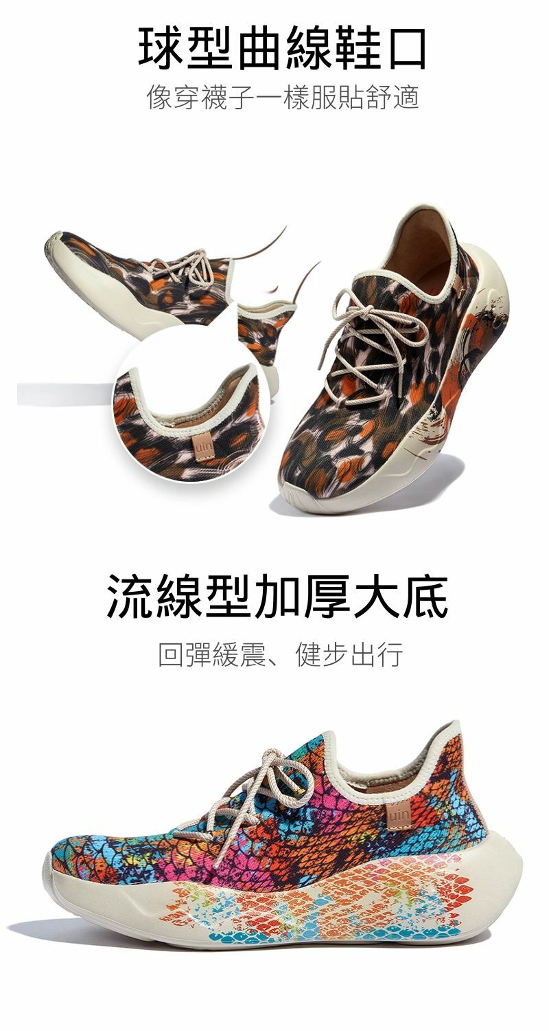 uin西班牙設計師的原創品牌,以旅行之心詮釋健康雙足走訪世界初衷。鞋款設計以趣味彩繪主題為發想主軸,功能特色以輕量抗震、柔軟彈性為雙足健康發展核心,為旅途帶來穿著無負擔的愉快體驗。